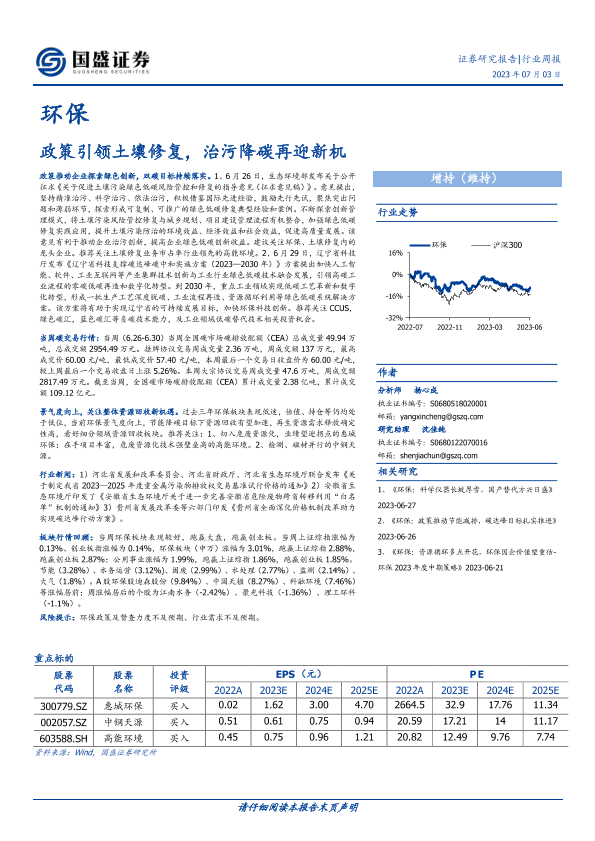 【国盛证券】【20230703】环保行业周报:政策引领土壤修复,治污降碳再迎新机-14页