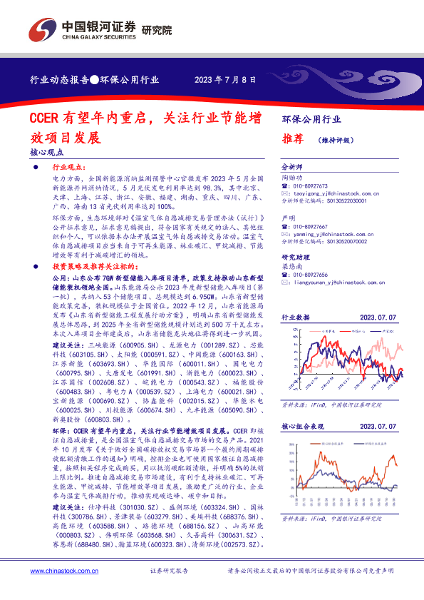 【银河证券】【20230708】环保公用行业:CCER有望年内重启,关注行业节能增效项目发展-13页