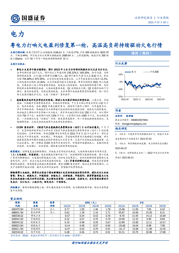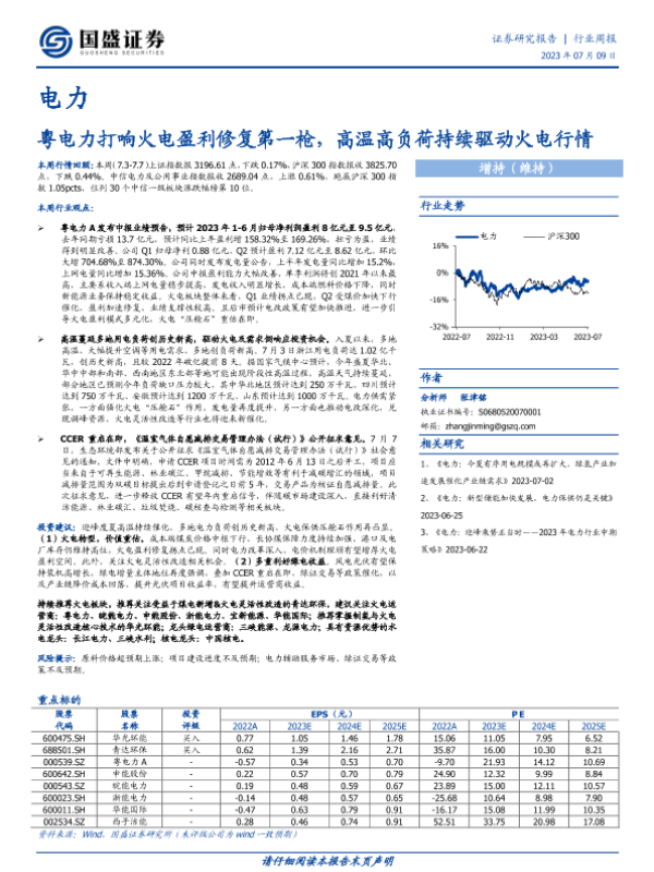 【国盛证券】【20230709】电力行业周报:粤电力打响火电盈利修复第一枪,高温高负荷持续驱动火电行情-13页
