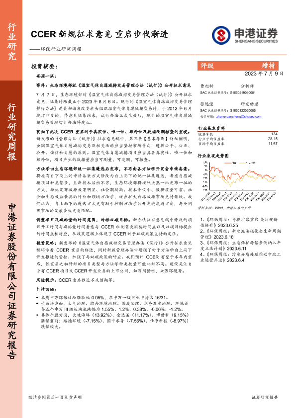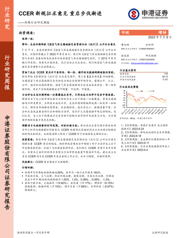 【申港证券】【20230709】CCER新规征求意见 重启步伐渐进-14页