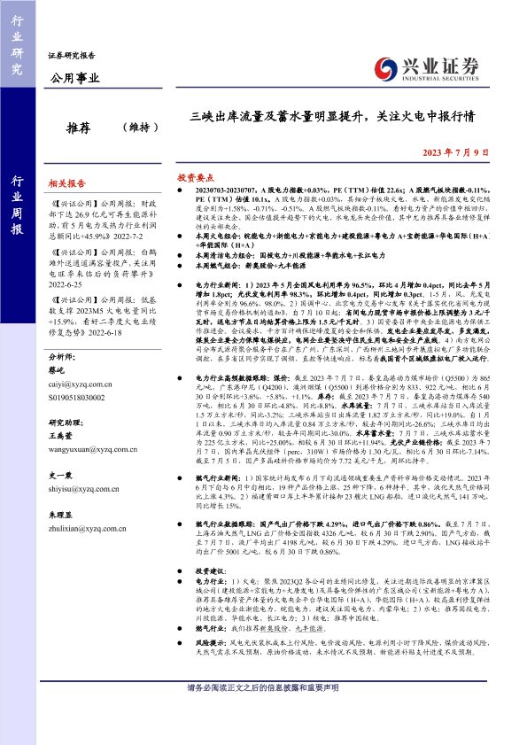 【兴业证券】【20230709】三峡出库流量及蓄水量明显提升,关注火电中报行情-25页