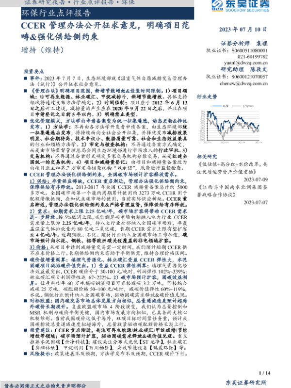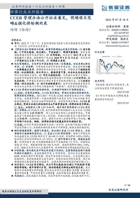 【东吴证券】【20230710】CCER管理办法公开征求意见,明确项目范畴&强化供给侧约束-14页