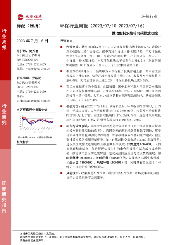 【东莞证券】【20230716】环保行业周报:推动能耗双控转向碳排放双控-12页