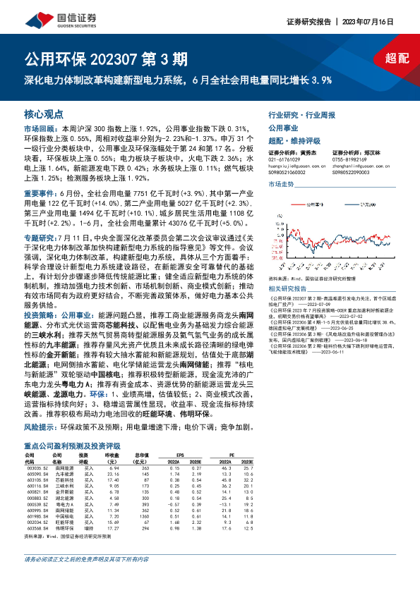 【国信证券】【20230716】深化电力体制改革构建新型电力系统,6月全社会用电量同比增长3.9%-30页
