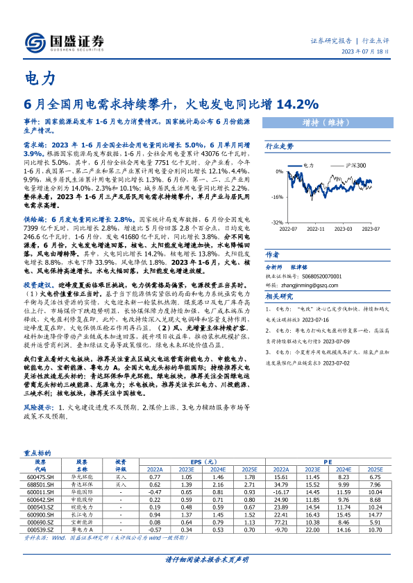 【国盛证券】【20230718】6月全国用电需求持续攀升,火电发电同比增14.2%-10页