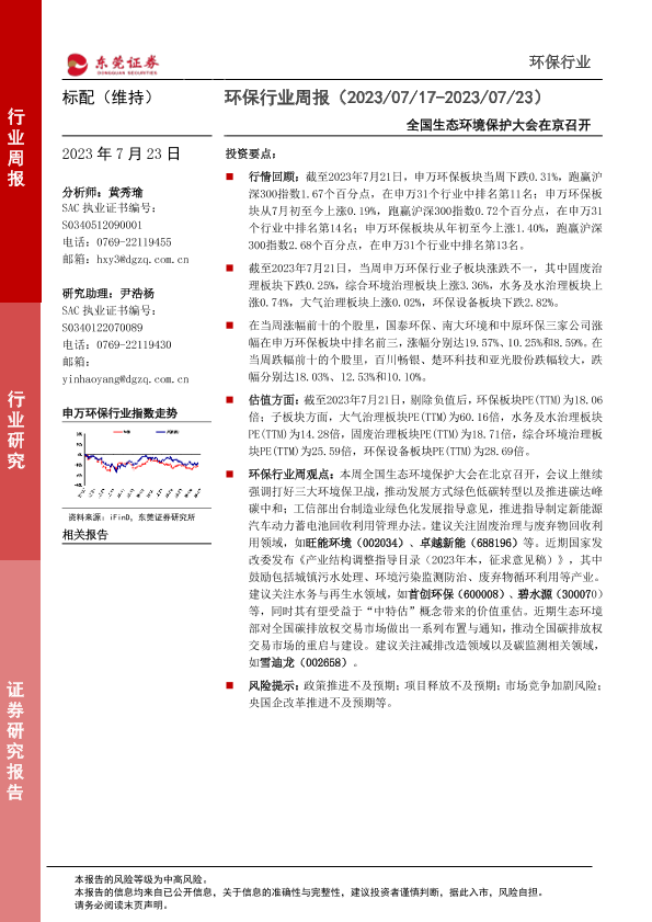 【东莞证券】【20230723】环保行业周报:全国生态环境保护大会在京召开-13页
