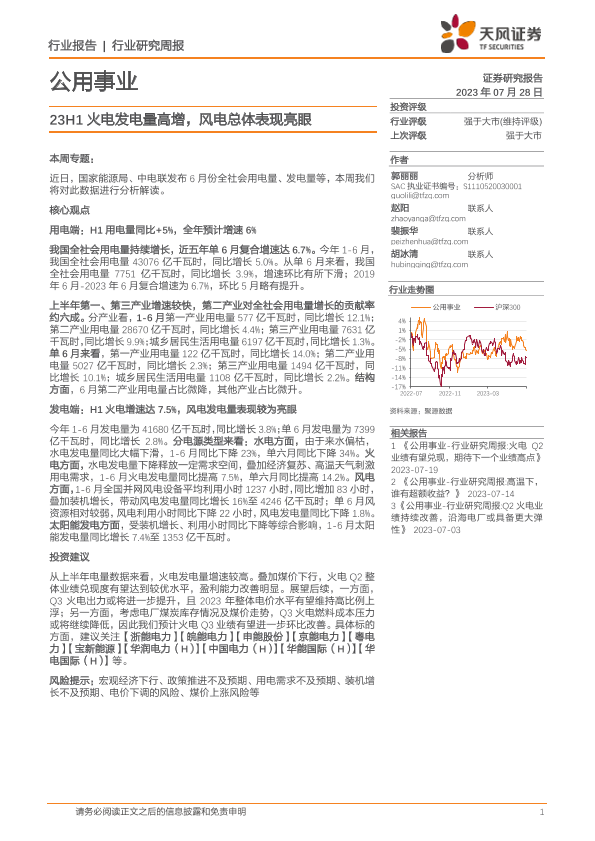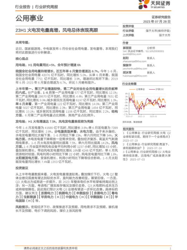 【天风证券】【20230728】23H1火电发电量高增,风电总体表现亮眼-13页