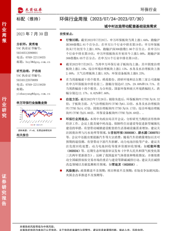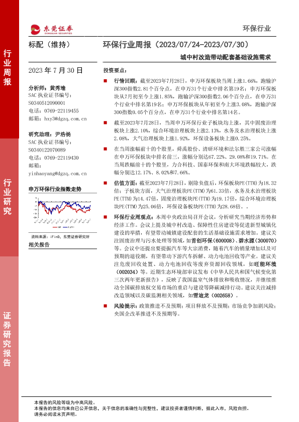 【东莞证券】【20230730】环保行业周报:城中村改造带动配套基础设施需求-12页
