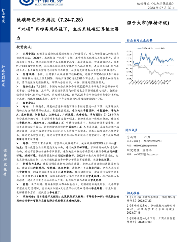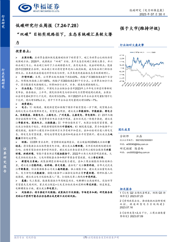 【华福证券】【20230730】“双碳”目标实现路径下,生态系统碳汇具较大潜力-20页