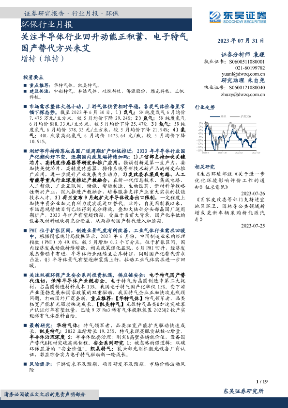 【东吴证券】【20230731】环保行业月报:关注半导体行业回升动能正积蓄,电子特气国产替代方兴未艾-19页
