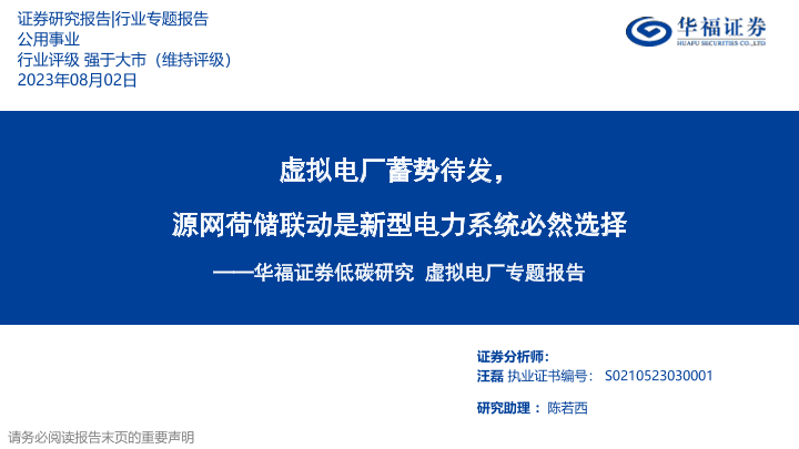 【华福证券】【20230802】公用事业虚拟电厂专题报告:虚拟电厂蓄势待发,源网荷储联动是新型电力系统必然选择-40页