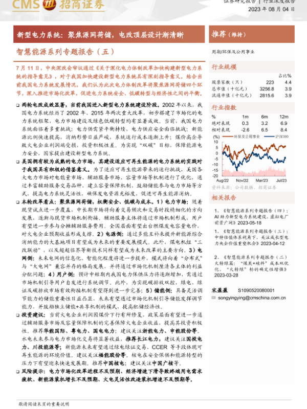 【海通证券】【20230804】智慧能源系列专题报告(五)- 新型电力系统:聚焦源网荷储,电改顶层设计渐清晰-31页