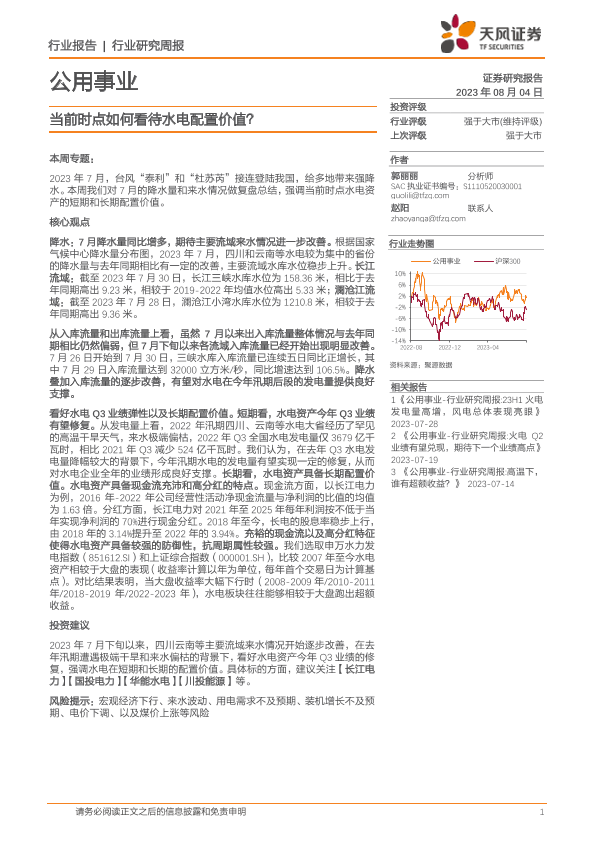 【天风证券】【20230804】当前时点如何看待水电配置价值-13页