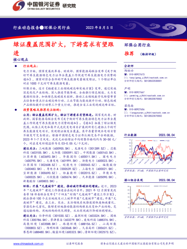 【银河证券】【20230805】环保公用行业:绿证覆盖范围扩大,下游需求有望跟进-12页