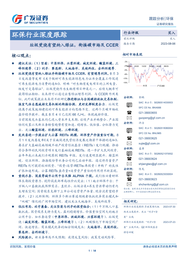 【广发证券】【20230806】环保行业深度跟踪:垃圾焚烧有望纳入绿证,衔接碳市场及CCER-14页
