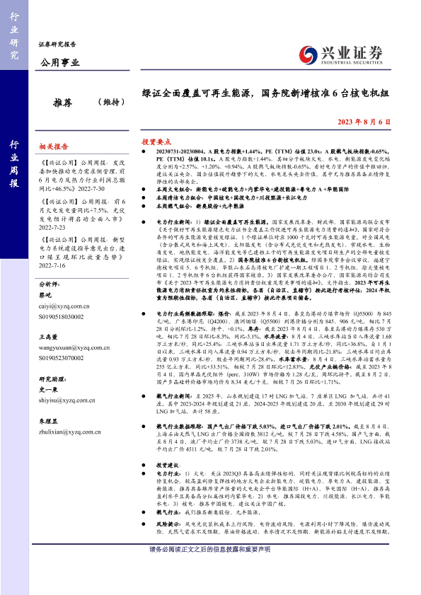 【兴业证券】【20230806】绿证全面覆盖可再生能源,国务院新增核准6台核电机组-26页