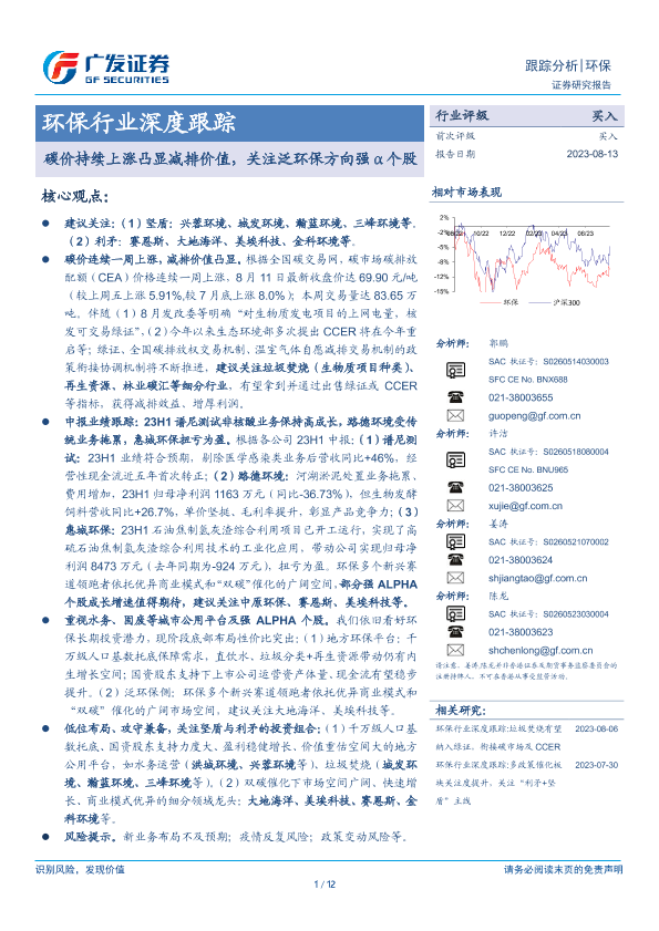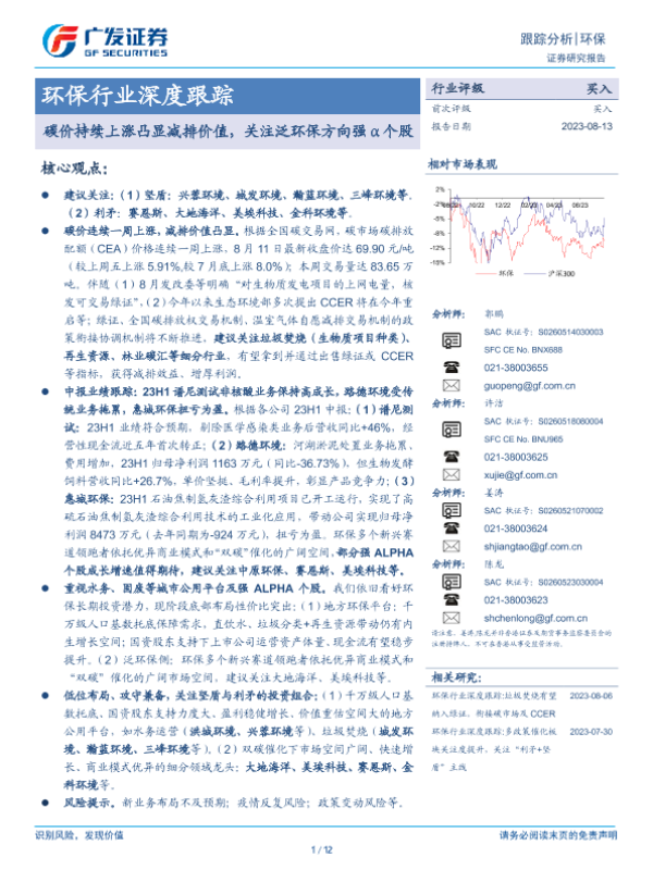 【广发证券】【20230813】碳价持续上涨凸显减排价值,关注泛环保方向强α个股-12页