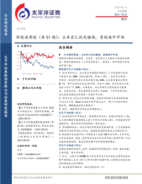 【太平洋证券】【20230813】新能源周报:去库存已到关键期,重视海外市场-36页
