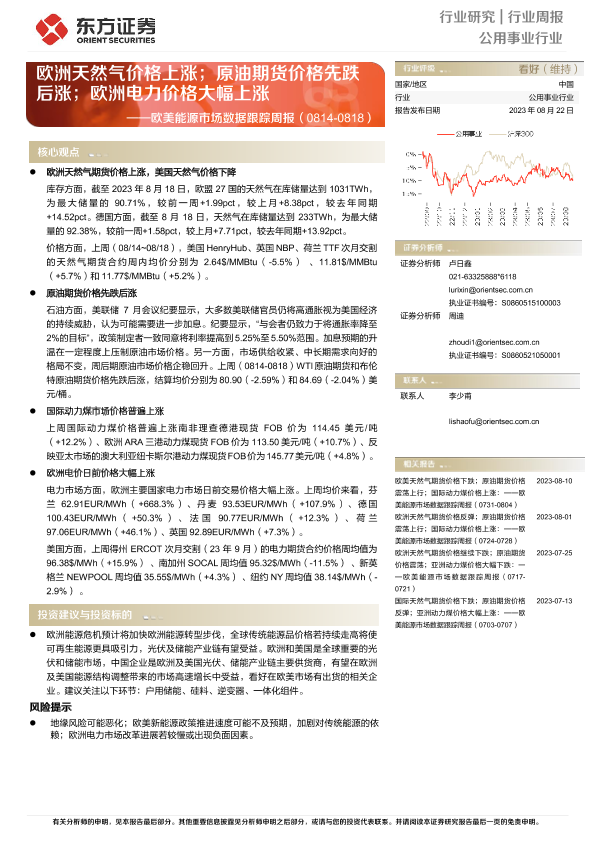 【东方证券】【20230822】欧美能源市场数据跟踪周报-13页