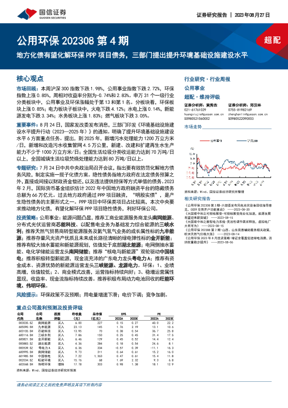 【国信证券】【20230827】地方化债有望化解环保PPP项目债务,三部门提出提升环境基础设施建设水平-31页