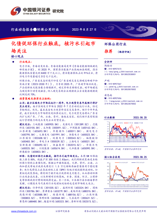 【银河证券】【20230827】环保公用行业动态报告:化债促环保行业触底,核污水引起市场关注-13页