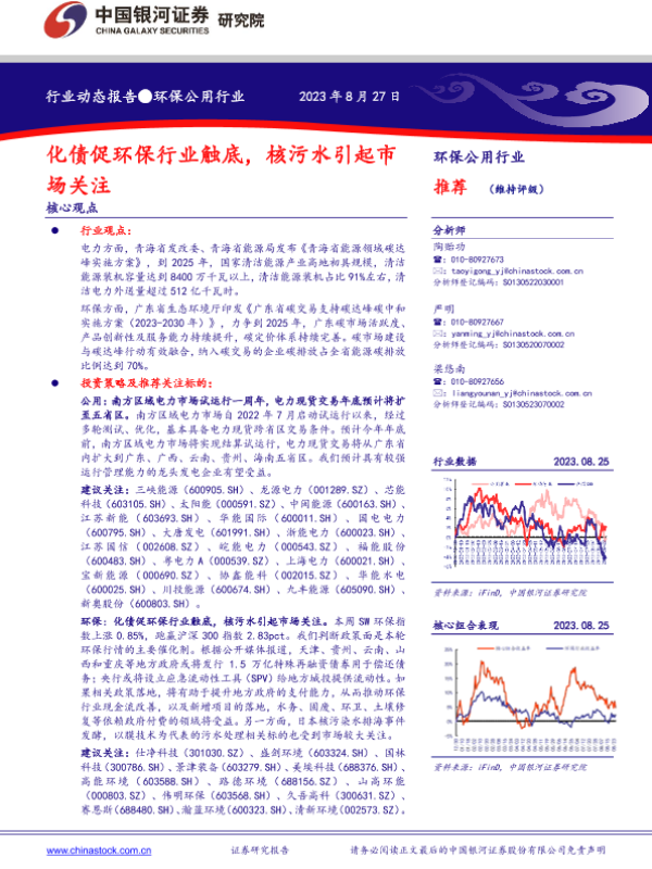 核污水 清洁能源 环保行业 电力市场 碳交易