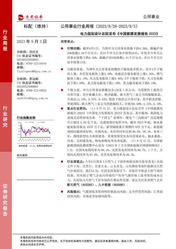 【东莞证券】【20230903】公用事业行业周报:电力规划设计总院发布《中国能源发展报告2023》-10页
