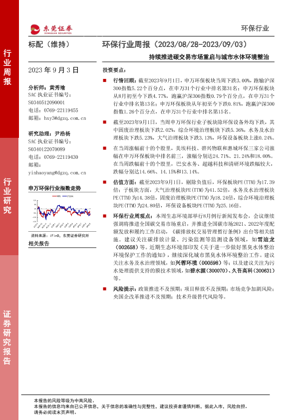 【东莞证券】【20230903】持续推进碳交易市场重启与城市水体环境整治-12页