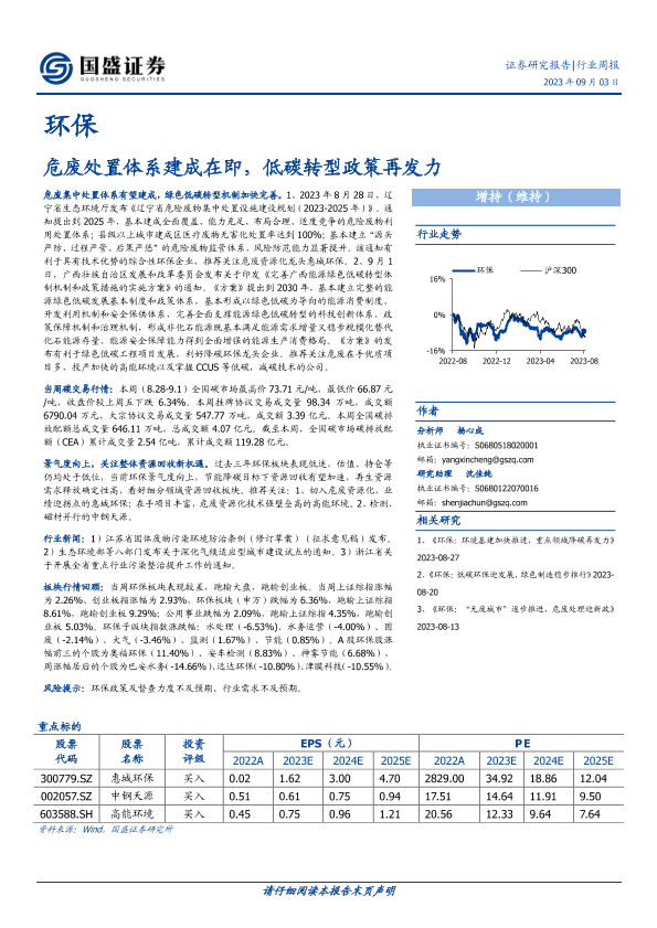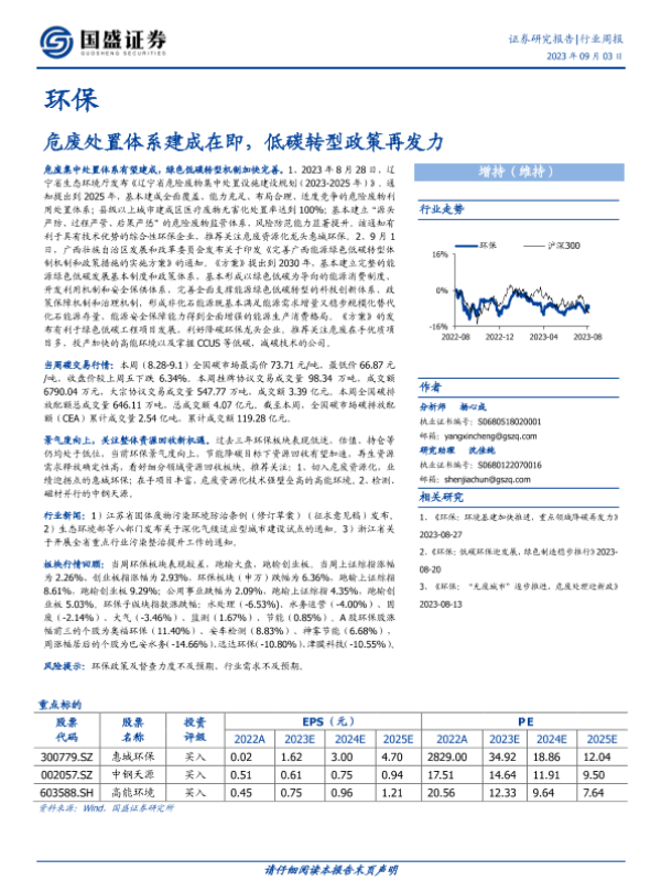 【国盛证券】【20230903】环保行业周报:危废处置体系建成在即,低碳转型政策再发力-11页