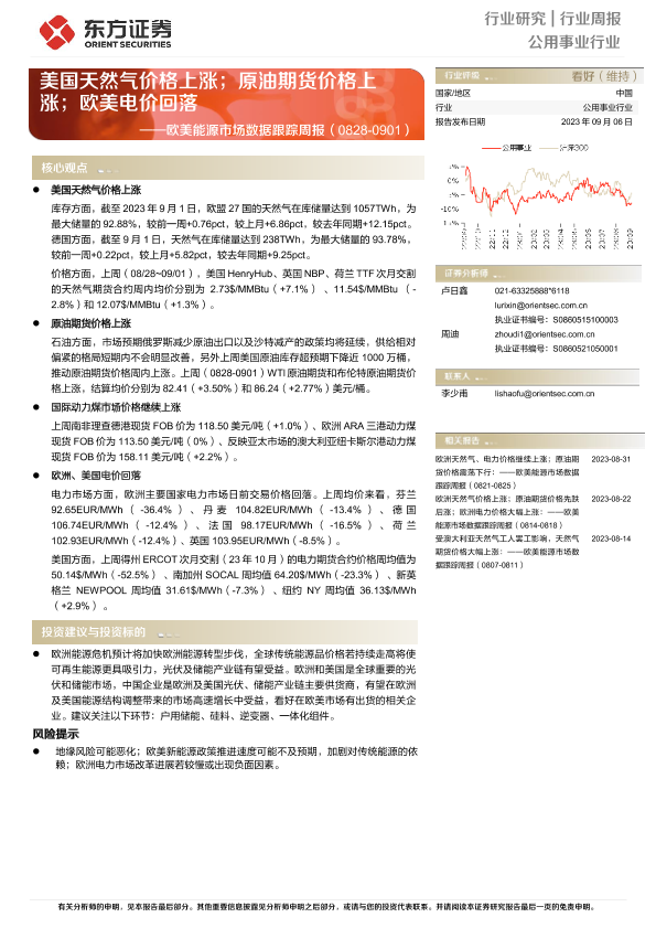 【东方证券】【20230906】欧美能源市场数据跟踪周报-13页