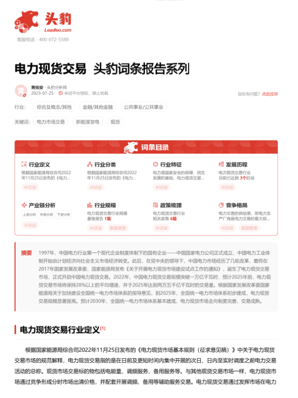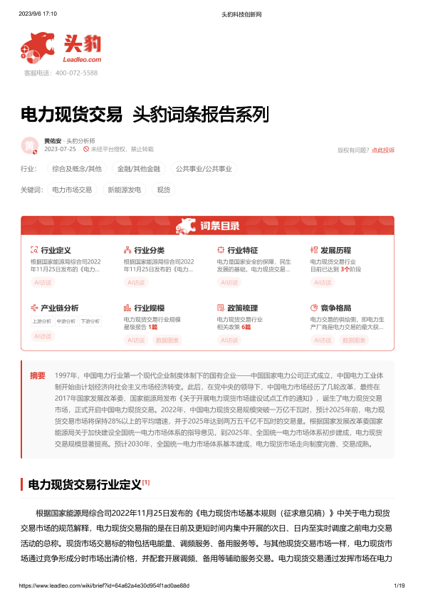 【头豹研究院】【20230906】电力现货交易 头豹词条报告系列-19页