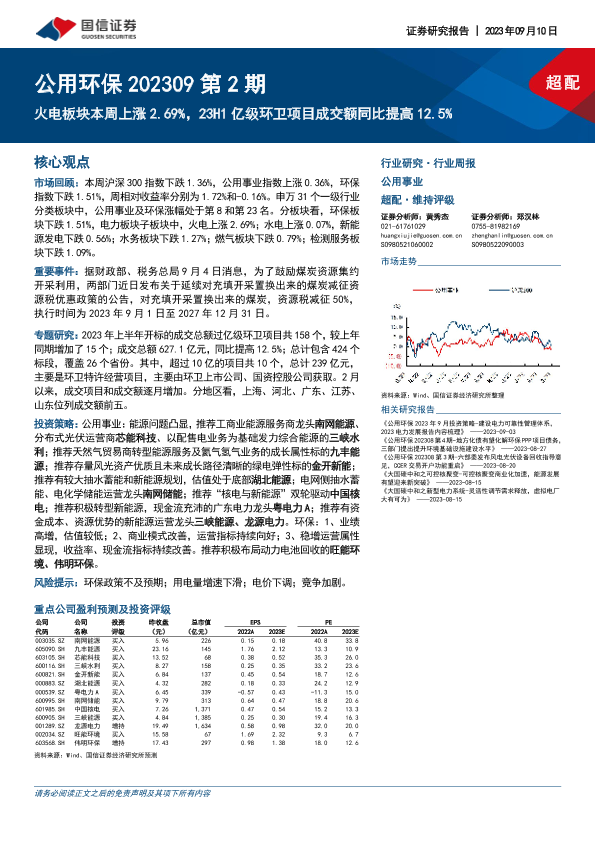 【国信证券】【20230910】公用环保202309第2期:火电板块本周上涨2.69%,23H1亿级环卫项目成交额同比提高12.5%-28页