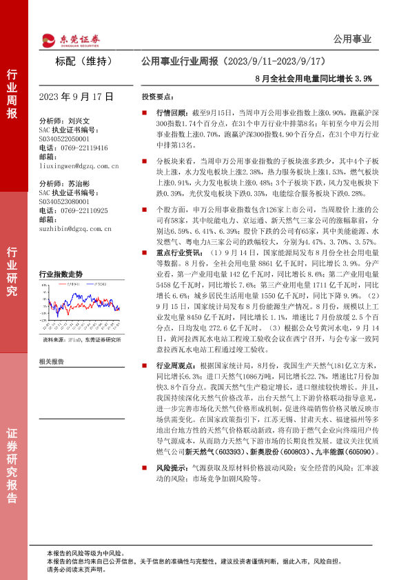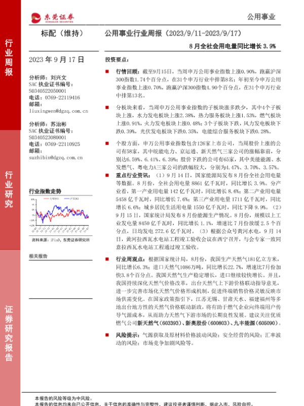 【东莞证券】【20230917】8月全社会用电量同比增长3.9%-11页