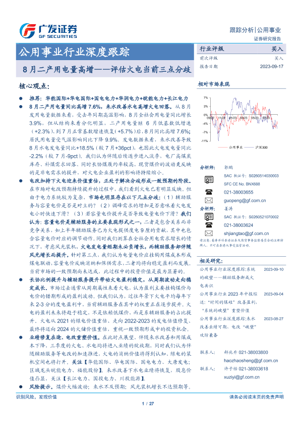 【广发证券】【20230917】8月二产用电量高增——评估火电当前三点分歧-27页