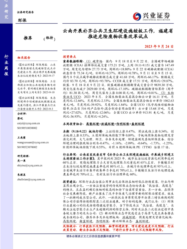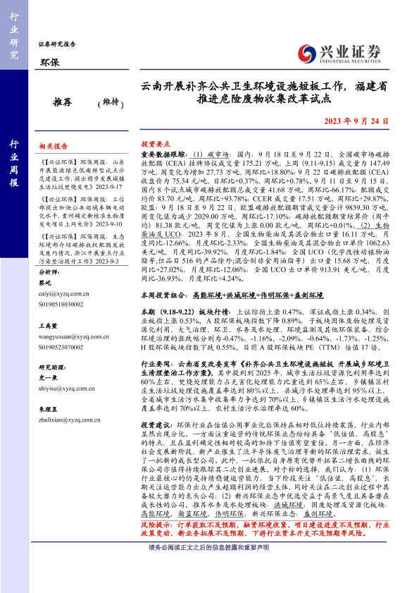 【兴业证券】【20230924】云南开展补齐公共卫生环境设施短板工作,福建省推进危险废物收集改革试点-11页