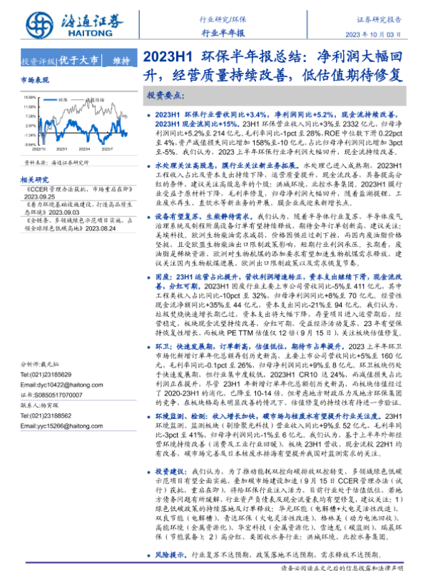 【海通证券】【20231003】2023H1环保半年报总结-31页