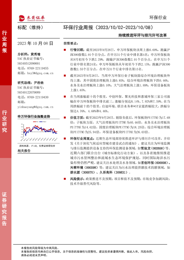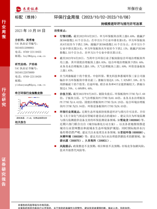 【东莞证券】【20231008】环保行业周报:持续推进环评与排污许可改革-12页