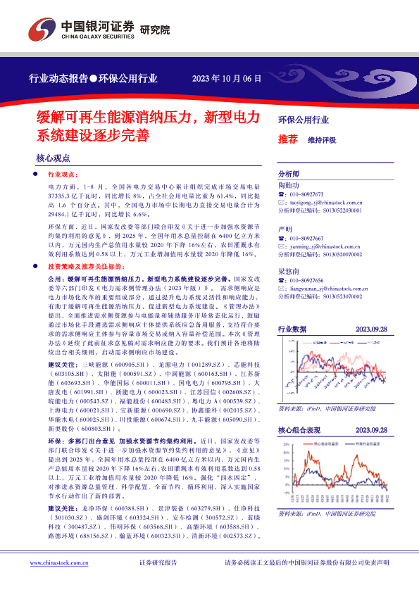 【银河证券】【20231006】环保公用行业动态报告:缓解可再生能源消纳压力,新型电力系统建设逐步完善-11页