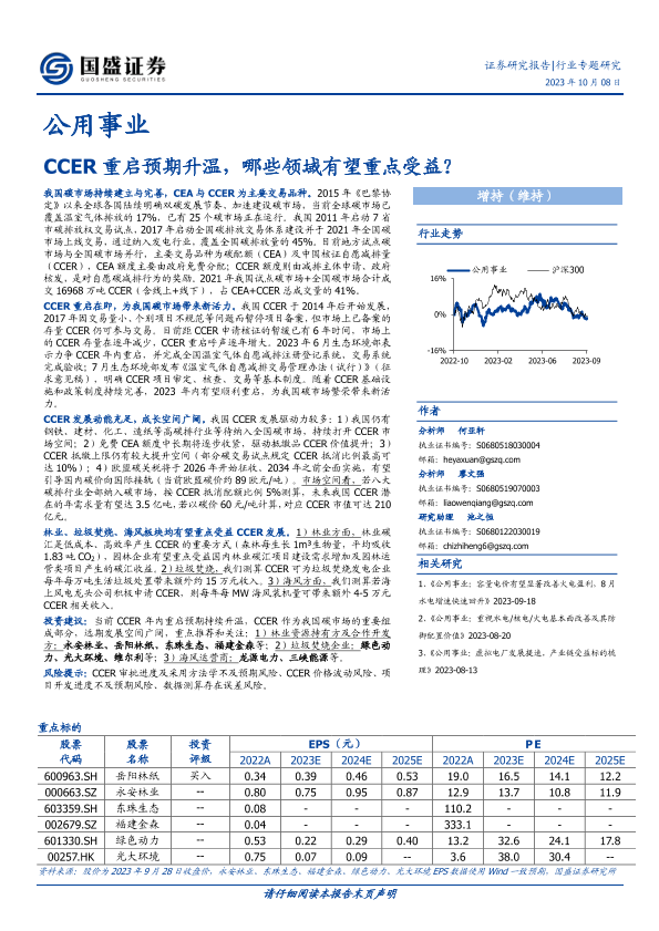 【国盛证券】【20231008】公用事业行业专题研究:CCER重启预期升温,哪些领域有望重点受益?-26页