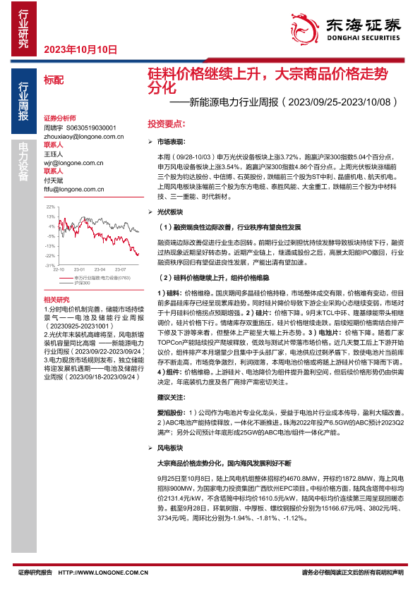 【东海证券】【20231010】硅料价格继续上升,大宗商品价格走势分化-17页