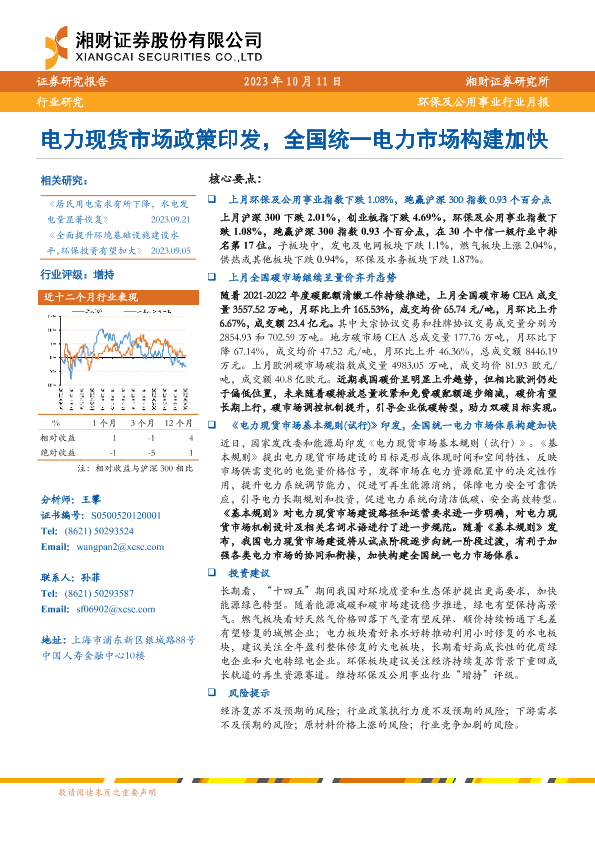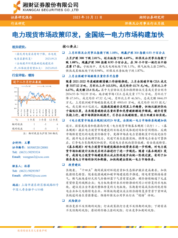 【湘财证券】【20231011】电力现货市场政策印发,全国统一电力市场构建加快-10页
