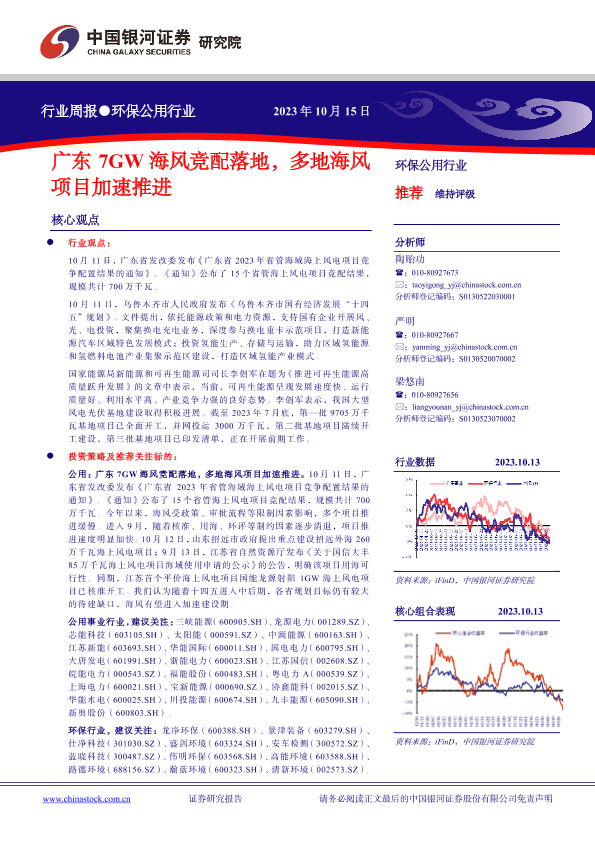 【银河证券】【20231015】环保公用行业周报:广东7GW海风竞配落地,多地海风项目加速推进-11页