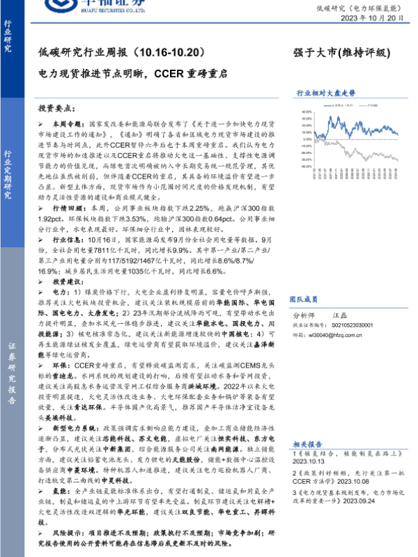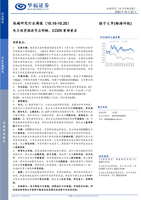 【华福证券】【20231020】低碳研究行业周报:电力现货推进节点明晰,CCER重磅重启-17页