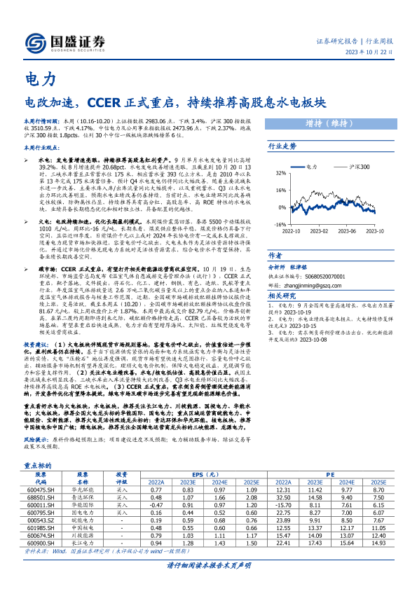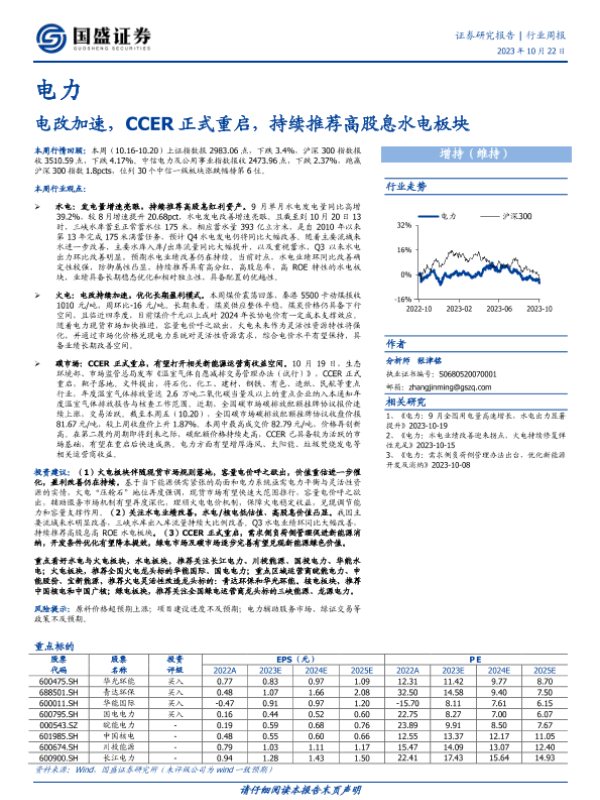 【国盛证券】【20231022】电力行业周报:电改加速,CCER正式重启,持续推荐高股息水电板块-14页