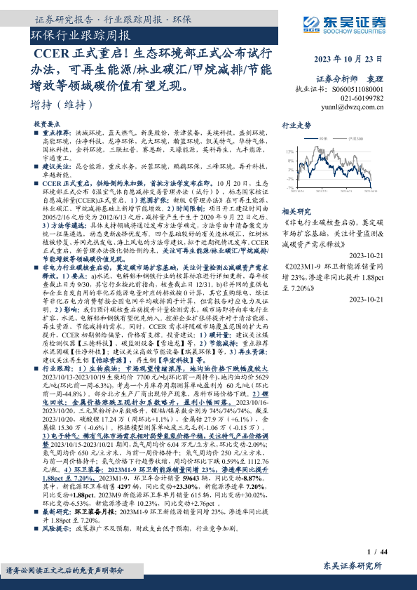 【东吴证券】【20231023】环保行业跟踪周报:CCER正式重启!生态环境部正式公布试行办法-44页