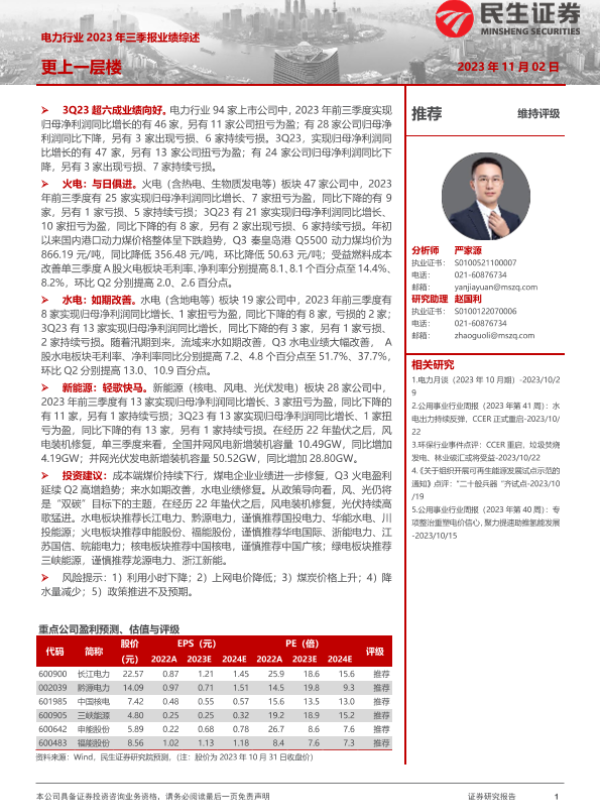 【民生证券】【20231102】电力行业2023年三季报业绩综述:更上一层楼-18页