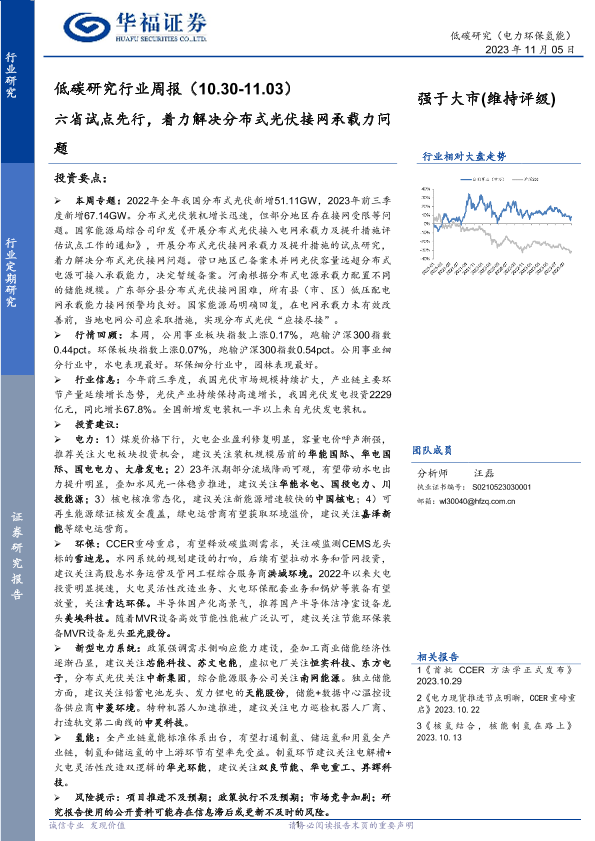 【华福证券】【20231105】低碳研究行业周报:六省试点先行,着力解决分布式光伏接网承载力问题-19页