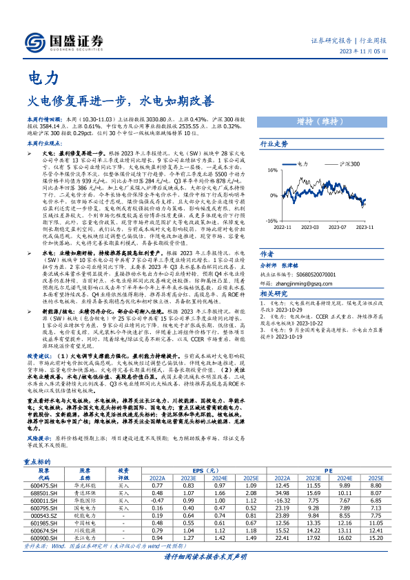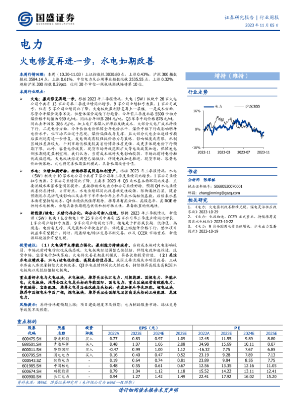 【国盛证券】【20231105】电力行业周报:火电修复再进一步,水电如期改善-16页