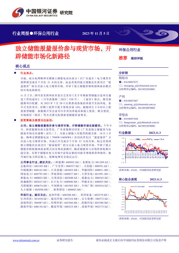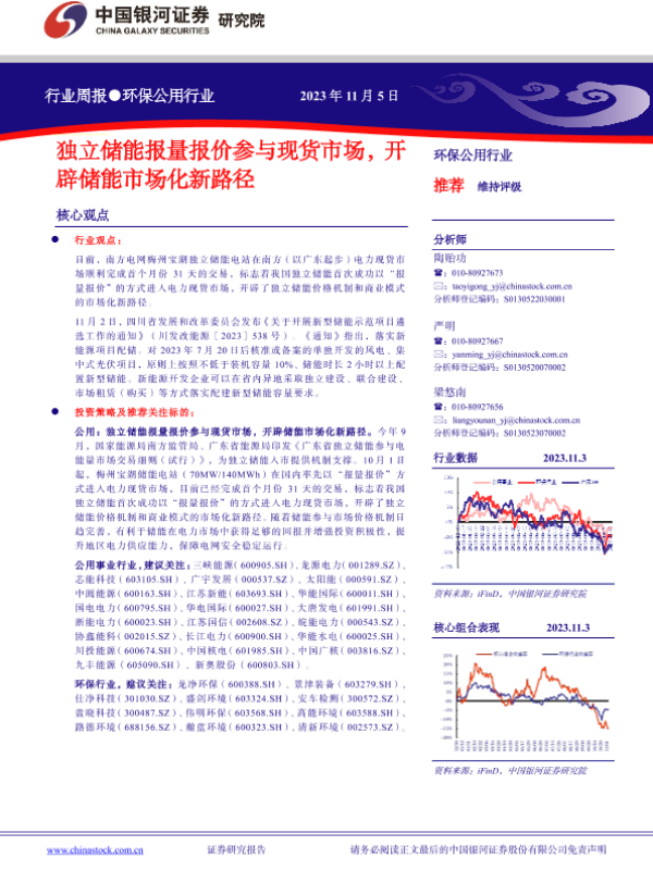 【银河证券】【20231105】环保公用行业行业周报:独立储能报量报价参与现货市场,开辟储能市场化新路径-11页
