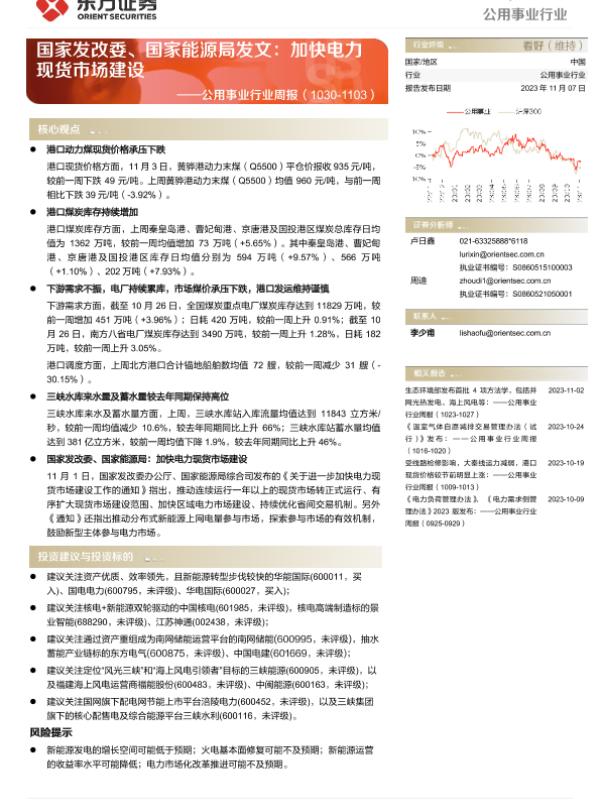 【东方证券】【20231107】加快电力现货市场建设-17页